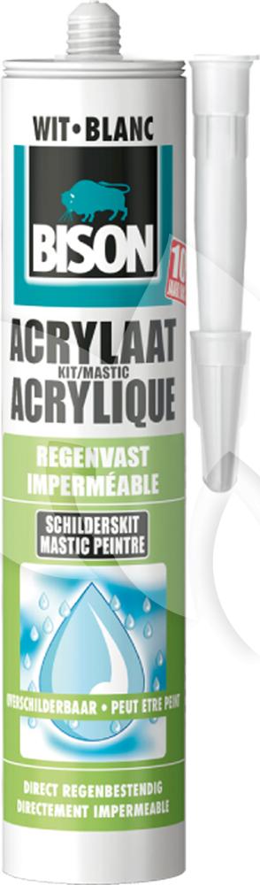 De acrylaatkit regenvast is geschikt voor het afdichten van weinig werkende voegen, naden en kieren bij deur- en raamkozijnen, vensterbanken, lambrisering, trappen, wanden, plinten, plafonds, gipsplanten en doorvoerleidingen. Daarbij is de snel regenvaste kit geschikt voor het afdichten van scheuren en barsten in muren. De kit hecht op (gas)beton, metselwerk, baksteen, pleisterwerk, hout en op de meeste overige poreuze ondergronden.