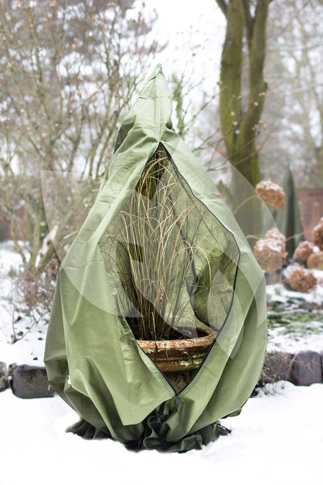 Met deze plantenhoes piramide is uw plant beschermd tegen vorst, zon, insecten en vogels. Dankzij de piramidevorm en de lange ritssluiting is de planthoes eenvoudig over uw plant aan te brengen zonder deze te beschadigen. Aan de onderkant van de planthoes bevindt zich een lang aansnoerkoord, na het aantrekken van dit koord omsluit de hoes zich om de pot of stam zodat deze optimaal beschermd is tegen vorst.