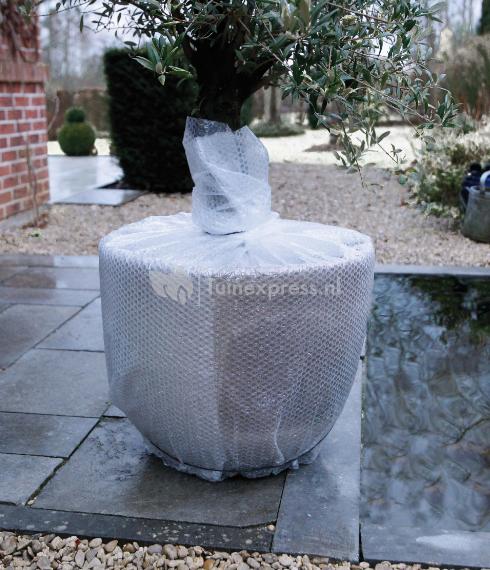 De noppenfolie isoleert en beschermd de plant tegen kou en extreme weersinvloeden.
