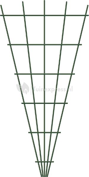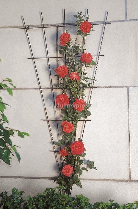 Het klimrek is vervaardigd uit verzinkt staal of groen, bruin of grijs geplastificeerd verzinkt staal. Het klimrek is 145 cm hoog en heeft een breedte van 5 cm aan de onderkant en 75 cm aan de bovenkant. Het metalen klimrek is dankzij het bijgeleverde bevestigingsmateriaal (pluggen, schroeven, afstandhouders) op een eenvoudige wijze tegen een schutting of muur te plaatsen. Door het gebruik van de afstandhouders kunt u eenvoudig ruimte vrijlaten tussen het klimrek en de muur. Hierdoor wordt het onderhoud makkelijker en kunnen uw struiken of klimplanten optimaal groeien. Tip: plant of zaai aan de voet van de muur en zorg er daarna voor dat de planten, naarmate zij verder groeien, het klimrek voldoende gaan bedekken.