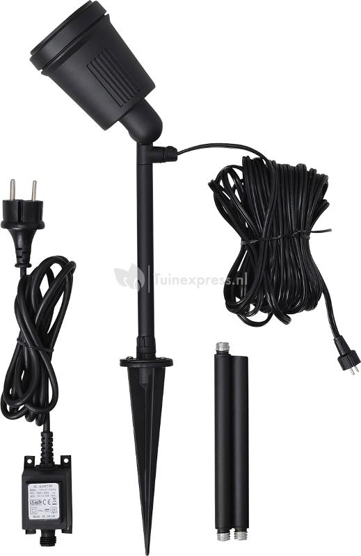 - Lengte aansluitsnoer: 15 meter (van stekker naar trafo 5 meter, en 10 meter verlengkabel)