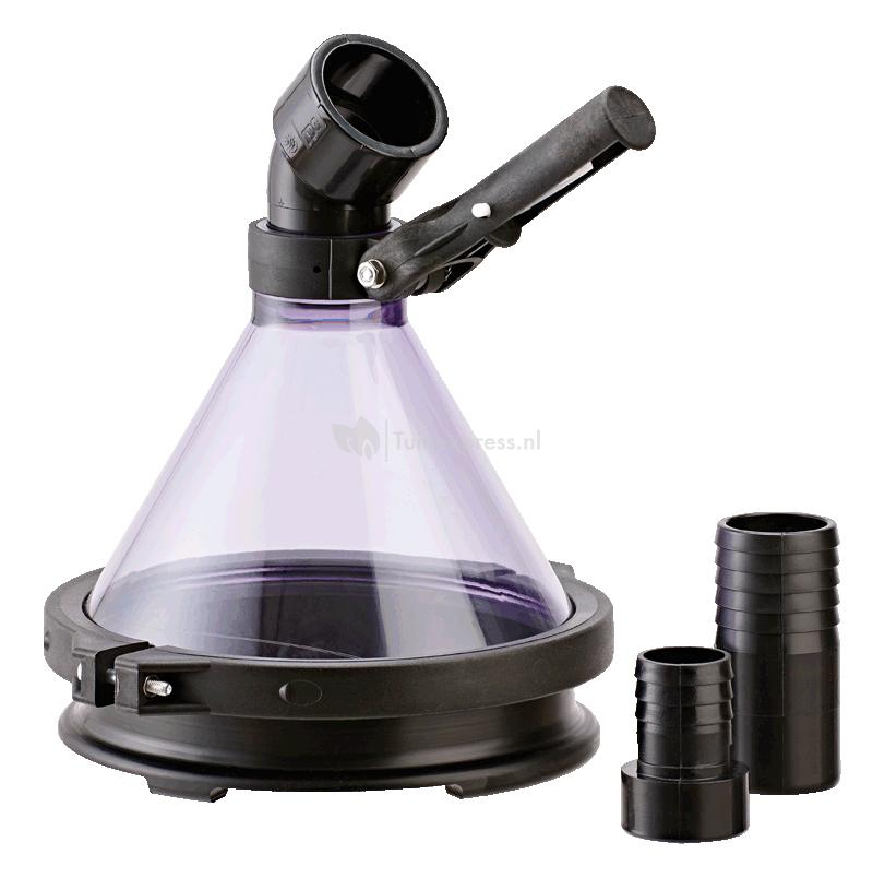 Met dit handige opzetstuk voor de professionele vijverzuiger PondoVac Premium kunt u op een behoedzame manier kiezeloppervlakken in de vijver reinigen! Dit trechter mondstuk zorgt er namelijk voor dat het vijverslib en ander vuil van de bodem wordt opgezogen zonder de kiezelsteentjes mee te zuigen.