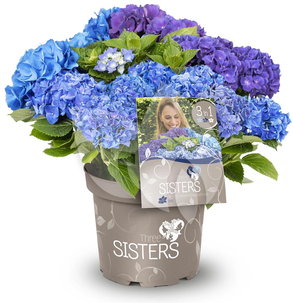 Een ideaal cadeau is de Three Sisters boerenhortensia. De hortensia bestaat uit drie verschillende kleuren hortensia die perfect op elkaar afgestemd zijn. De Three sisters is in 3 verschillende kleuren verkrijgbaar en tevens in een mix van pasteltinten. Deze Three Sisters blue heeft 3 kleuren blauwe bloemen die harmonieus op elkaar afgestemd zijn. De potmaat is een ideale maat voor balkon of terras. Met deze hortensia kunt u absoluut iemand verrassen!