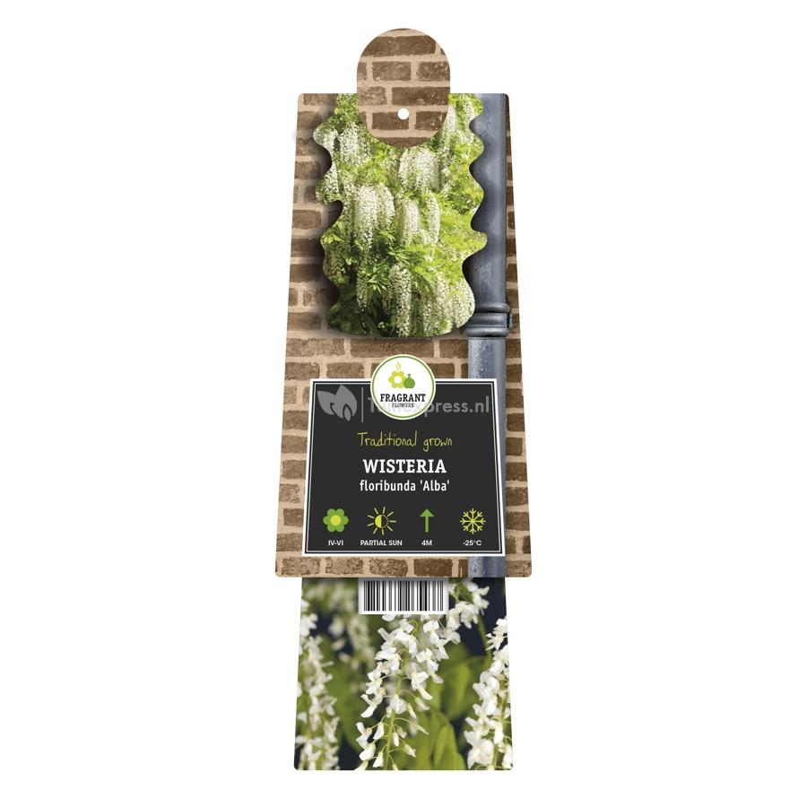 Hoewel vooral de blauwe regen bekend is, is deze witte variëteit net zo'n prachtig verschijnsel. In het voorjaar sieren enorme trossen witte bloemen deze sierplant. De hangende trossen kunnen wel tot 60cm lang worden! Een prachtige plant om pergola's, schuurtjes of muren te laten begroeien. De witte regen is niet zelfhechtend en heeft een stevige klimconstructie nodig om zich om te kunnen wikkelen. Deze witte regen wordt ook wel Japanse blauweregen genoemd en de bloemen geuren heerlijk. Niet onbelangrijk is dat witte regen, en dan vooral de zaden, giftig zijn. Plaats de plant dus altijd buiten bereik van kinderen! Laat u in vervoering brengen door de sprookjesachtige sfeer die de witte regen naar uw tuin brengt!
