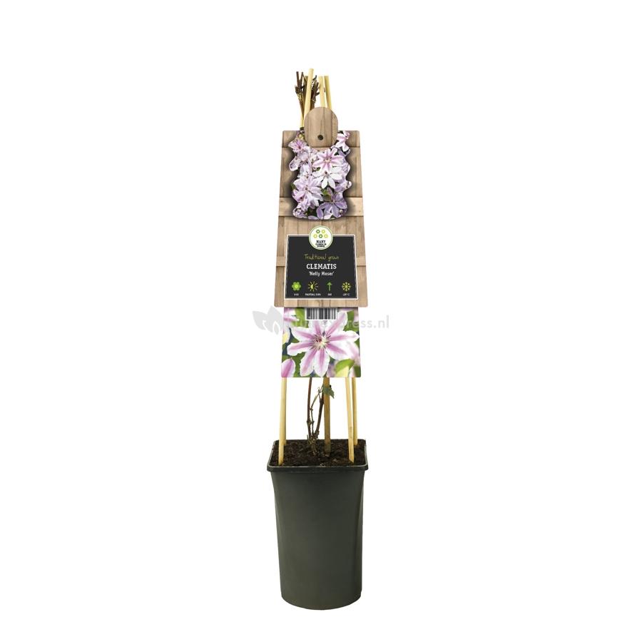 De bosrank ofwel clematis is een zeer populaire plant om tegen een schutting of muur te laten klimmen. De plant heeft een hoge sierwaarde door de rijke bloei van de meest prachtige bloemen. Zo ook deze roze bosrank die uw aandacht trekt met prachtige roze tot lichtroze bloemen met een donkere streep over het midden van het bloemblad. De witte meeldraden hebben roze tipjes wat nog extra sierwaarde geeft aan deze plant. De bloemen kunnen tot wel 15cm groot worden en maken daarmee een echte eyecatcher van deze plant!