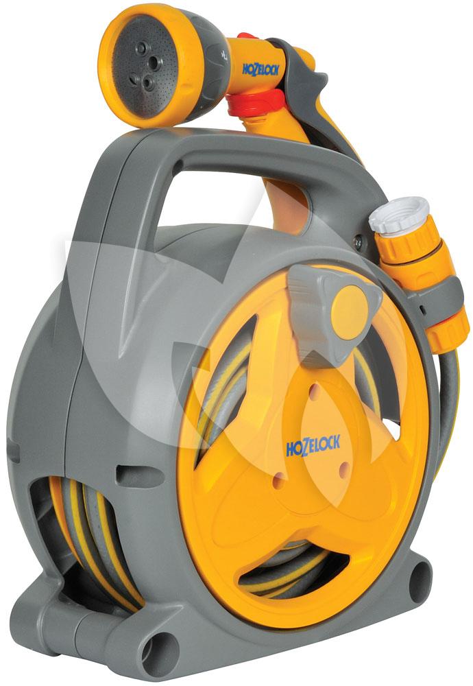 Deze praktische tuinslang is ideaal voor een kleine tuin, patio of balkon. De haspel kan vrijstaand gebruikt worden maar tevens gedragen worden tijdens gebruik door zijn compacte vorm en lichte gewicht. De box is uitgerust met 2 meter aanvoerslang en 8 meter verdeelslang waardoor u een totaal bereik heeft van 10 meter. De tuinslanghaspel is voorzien van alle benodigde koppelstukken en uitgerust met een multi spraygun tuinspuit. De tuinspuit heeft 5 sproeimogelijkheden en is tevens vast te zetten zodat u de spuit niet de hele tijd hoeft in te knijpen.