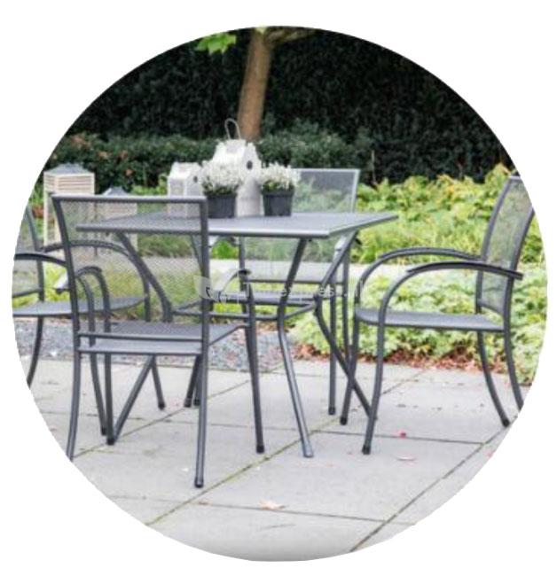 Verfraai uw tuin met de tuintafel Nordic vierkant en geniet van een heerlijke zomerdag in uw eigen tuin. Deze mooie tuintafel is gemaakt van hoogwaardig staal welke weerbestendig én onderhoudsvrij is. De tuintafel kan het hele jaar door buiten blijven staan en is gemakkelijk te reinigen met een mild sopje. De poedercoating op het staal zorgt voor een optimale bescherming van de tafel waardoor hij jarenlang mooi blijft.