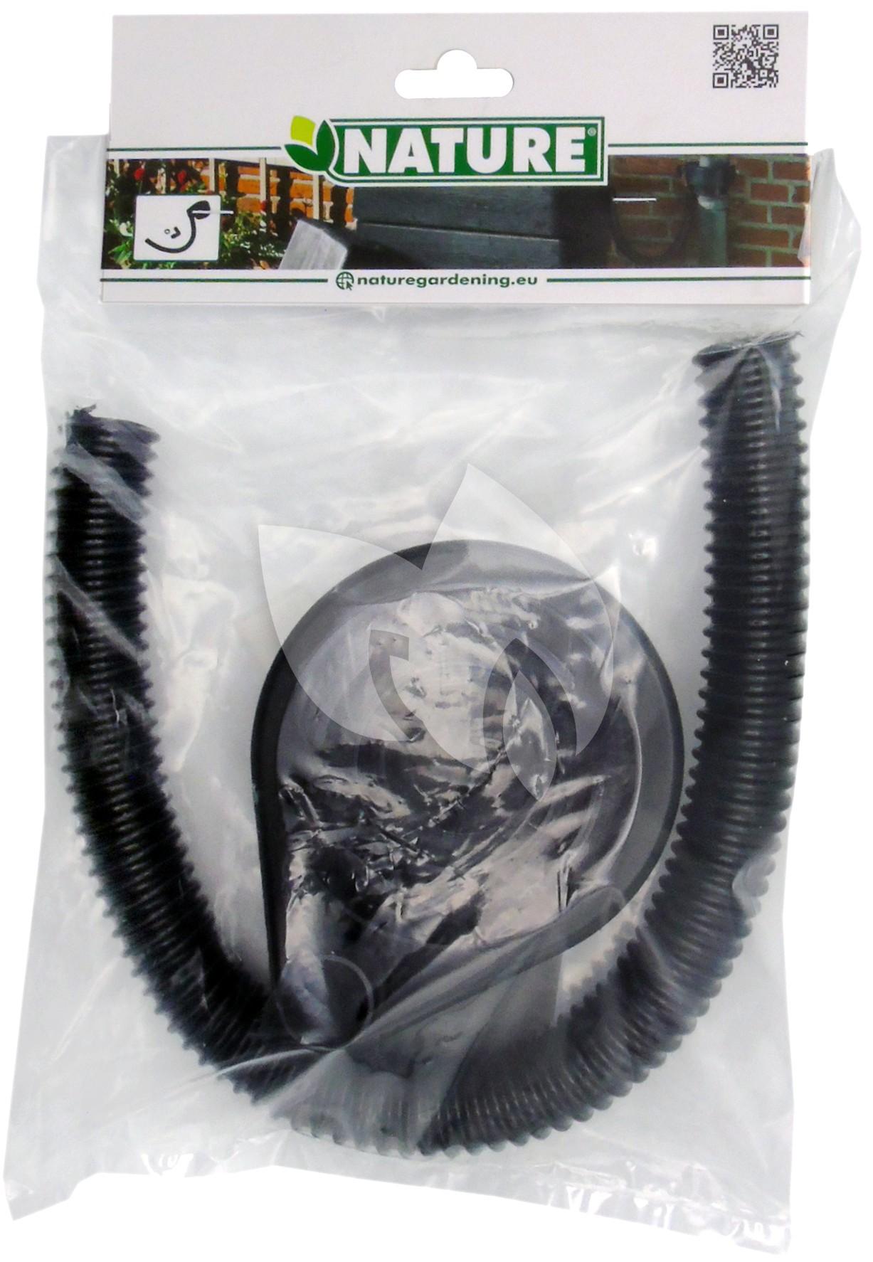 Deze regentonaansluitset maakt het mogelijk om regenwater uit ronde dakgoten op te vangen. Geschikt voor ronde- en vierkante regenpijpen. De aansluitslang wordt geleverd met tule en moer.
