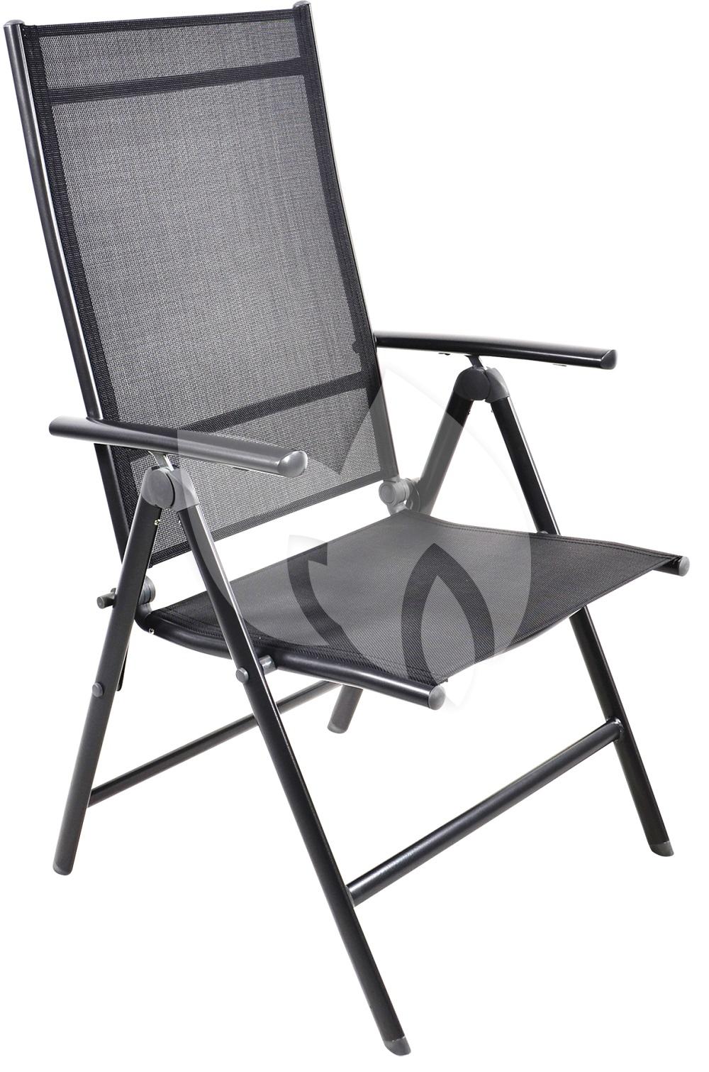 Tuinstoel Veneto is lichtgewicht door het aluminium frame met glanzende afwerking. De rugleuning is verstelbaar en net zoals de zitting bespannen met weerbestendig textileen. De standenstoel heeft een minimalistisch ontwerp.