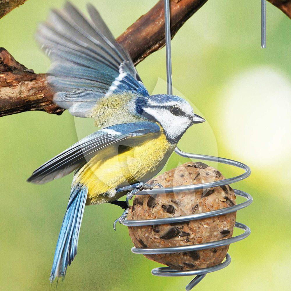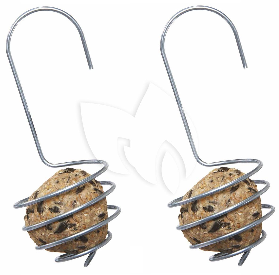 Set van twee verzinkte vetbolhouders. Een simpel, maar doeltreffend ontwerp waar kleine vogels zeker gebruik van zullen maken. Deze metaalhouders kennen meerdere voordelen. Een voordeel van deze metalen spiraalhouders is je er een vetbal in kan plaatsen welke niet in plastic verpakt zit en zo het gebruik van plastic verminderd en de spiraal ieder seizoen kan hergebruiken. Een ander voordeel is de veiligheid van vogels. Door geen plastic netje te gebruiken, voorkom je dat vogeltjes met hun pootjes vast komen te zitten in het netje.