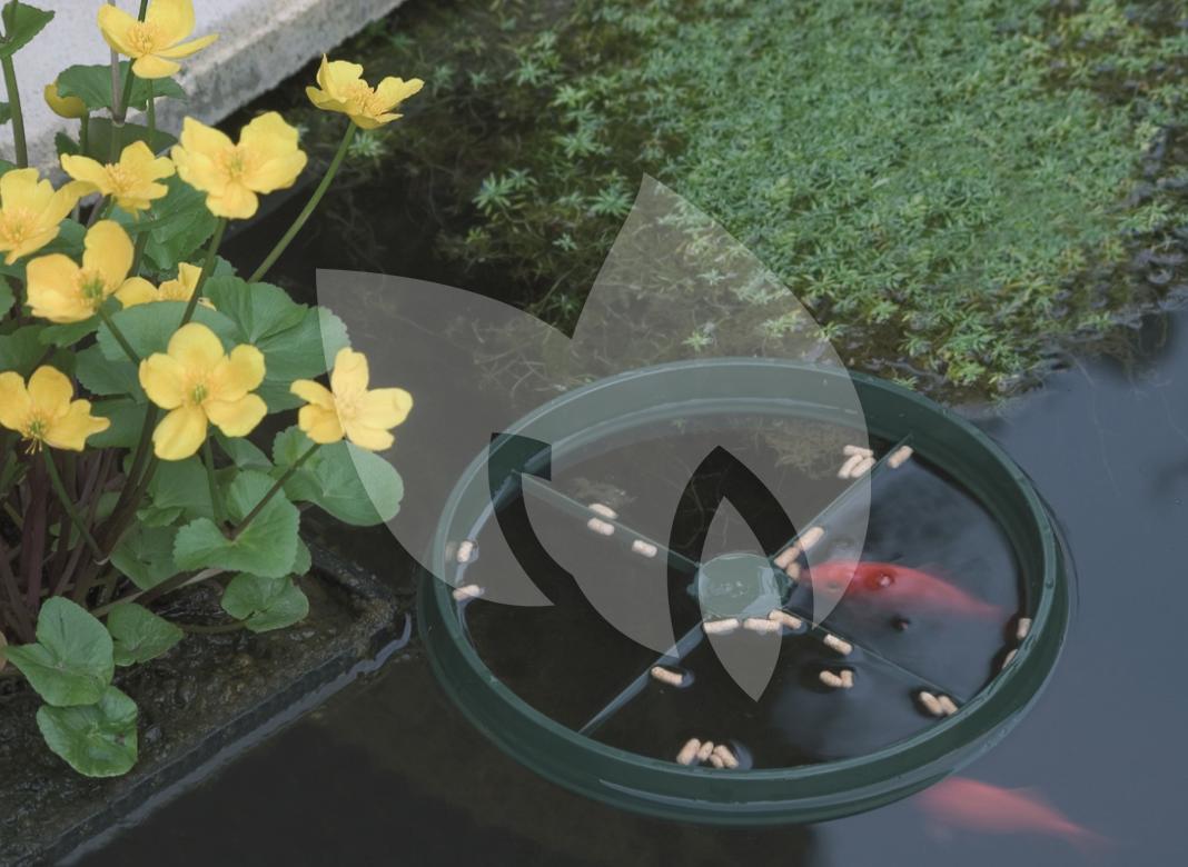 Door het voer in een voederring te plaatsen kunt u ook direct zien welke vissen komen eten en welke wellicht aandacht nodig hebben. Eventueel kunt u de visvoederring gebruiken om een planteneiland te creëren. Een planteneiland is prachtig om te zien en biedt een aangename beschutting voor de vissen.