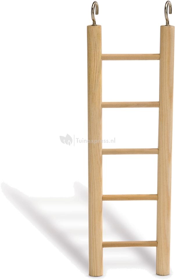 Een houten ladder met 6 treden voor uw vogel waarop uw vogel heerlijk kan klimmen en klauteren. Makkelijk te bevestigen door de 2 metalen haken aan de bovenzijde van de ladder. Lengte: 28 cm.