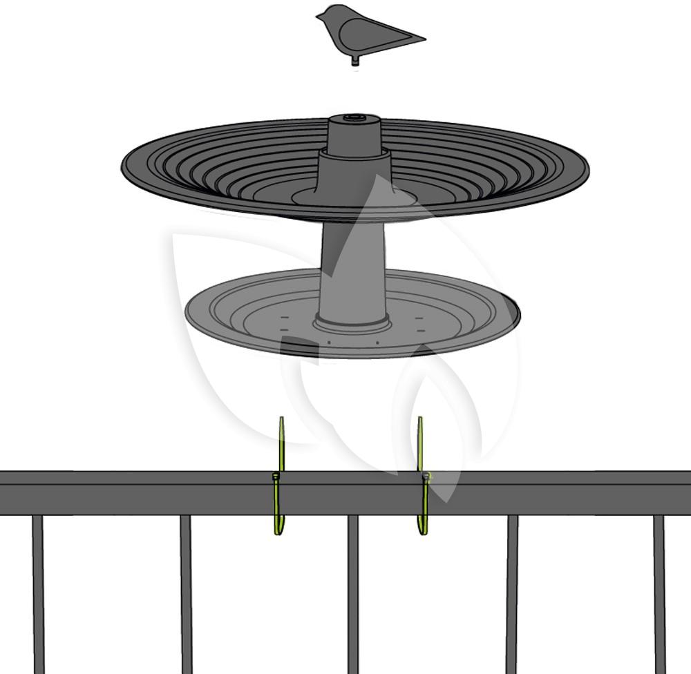 - Bevestigingswijze: zowel hangend, staand op een stok of vast aan een balkonrailing. het badje is demontabel en daardoor makkelijk schoon te maken.