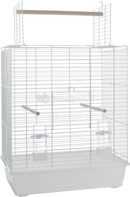 Vogelkooi Big Ara, open model. Deze kooi is geschikt voor parkieten en agaporniden. Het dak van deze kooi kan open om zo een vrije zitplaats voor uw vogel te creeren. Inclusief zitstokjes en drink en voederbakjes.