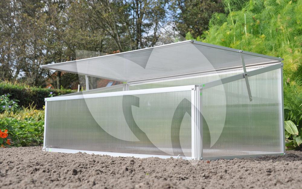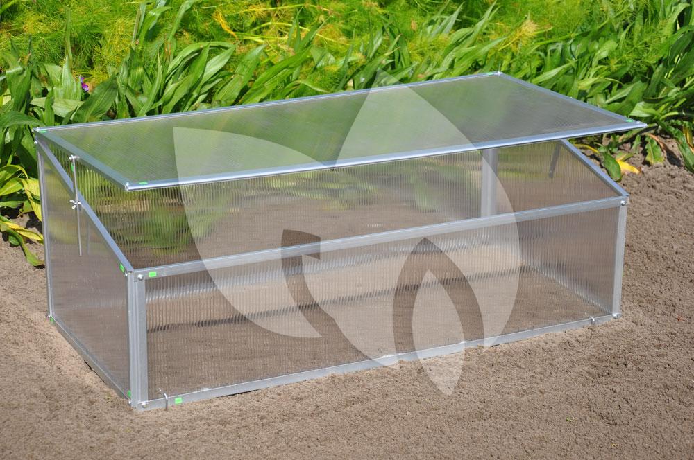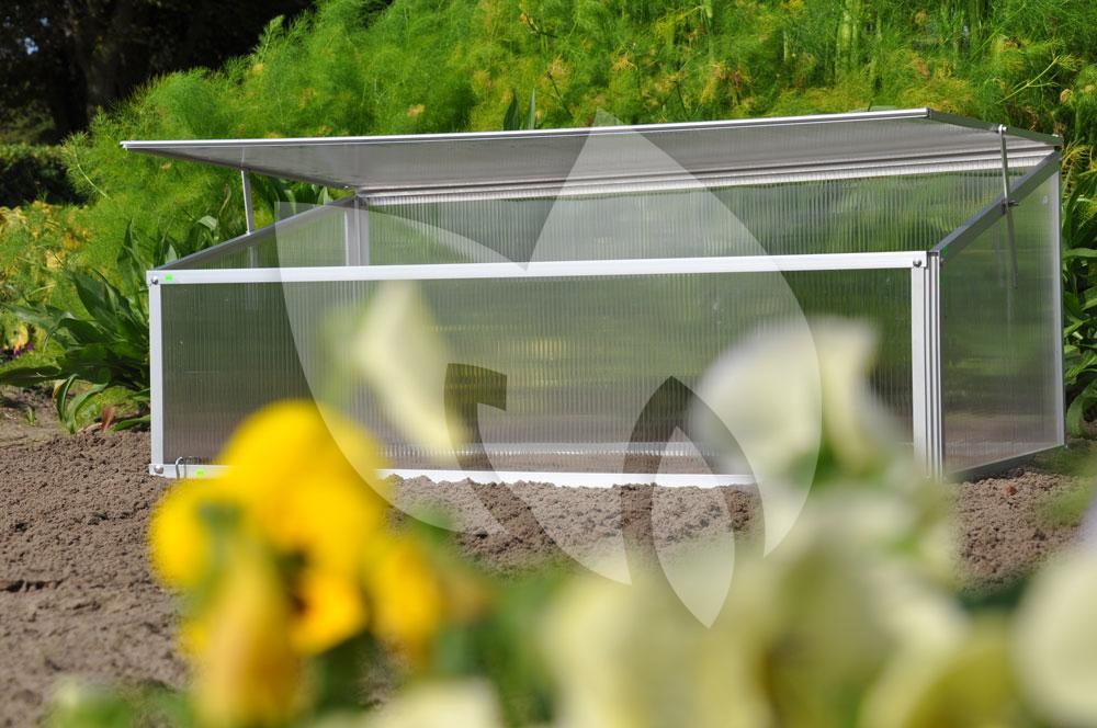 Deze kweekkas bestaat uit een onderhoudsvrij aluminium frame en een kunststof afdichting. De afdichting van polycarbonaat heeft een dikte van 4 mm en is dubbelwandig. Polycarbonaat heeft verschillende voordelen: het is niet gevoelig voor breuk, geheel veilig in gebruik en heeft het bovendien een isolerende werking.