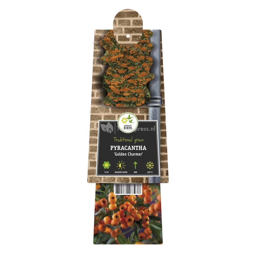 Deze vuurdoorn met oranjegele besjes is een opvallende plant in uw tuin tijdens het najaar en in de winter. De groenblijvende klimplant bloeit met grote bloemschermen bestaande uit vele kleine witte bloemetjes. Hierna volgen de oranjegele besjes in het najaar; een zeer populaire sierheester bij vogels. De besjes zijn favoriet en ze bouwen dan ook graag hun nesten in deze sierheesters. Let op, de vuurdoorn heeft scherpe doorns op de twijgen, iets om goed bij na te denken betreft de standplaats van de vuurdoorn! Bent u een vogelliefhebber? Haal dan een vogelparadijs uw tuin in met de vuurdoorn!