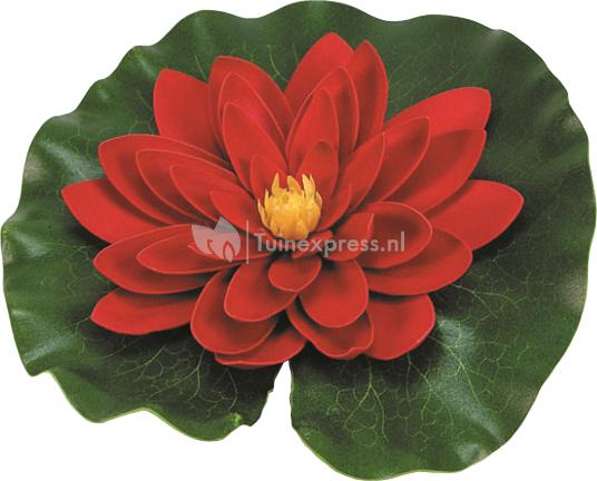 Bent u op zoek naar waterplanten voor in uw vijver maar heeft u geen zin in het bijkomend onderhoud? Ga dan voor een waterlelie van kunststof! De waterlelie is een verrijking voor iedere vijver en brengt een kleurrijke sfeer in de omgeving. De waterlelie is voorzien van een groen blad en een rode bloem in het midden en heeft een diameter van 14 centimeter.
