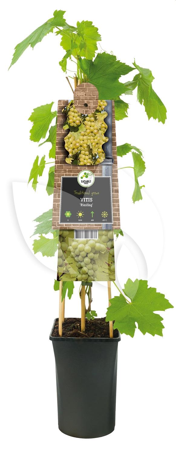 De Witte Druif Vitis Riesling 75 cm klimplant is een eetbare klimplant met een oorsprong uit Duitsland. De Witte Druif Vitis Riesling 75 cm klimplant geeft jaarlijks heerlijk zoete witte druiven. De druiven van de Witte Druif Vitis Riesling 75 cm klimplantkunnen rond augustus worden geoogst. De plant is winterhard.