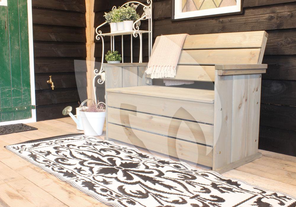 Een prachtig tuintapijt zorgt voor een gezellige en comfortabele sfeer op uw balkon. Het buitentapijt heeft de kleuren zwart en wit en is aan twee zijden te gebruiken. U kunt het tuintapijt omdraaien zodat er een omgekeerde kleurstelling ontstaat. Het buitenkleed heeft een lengte van 197,5 centimeter en een breedte van 72,4 centimeter en is daardoor perfect voor gebruik op het balkon. Verder zal het buitenkleed ook prachtig staan op uw terras of in de serre.