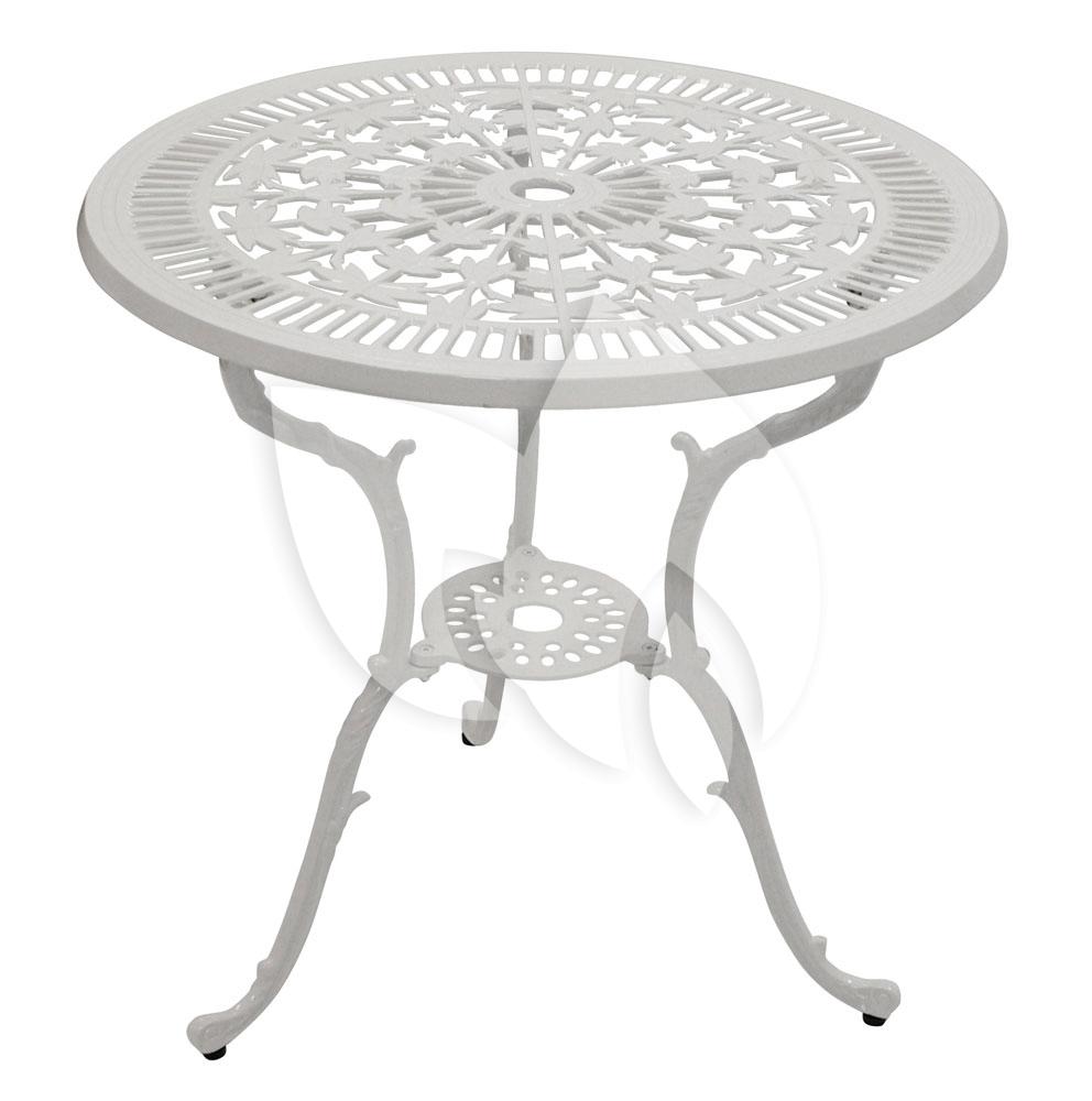 De Bistrotafel Antiek ⌀ 70 cm - wit is een prachtige klassieke tafel geschikt voor buitengebruik. Door de gecoate laag over het gietaluminium is deze bistrotafel onderhoudsvriendelijk. Onder de tafelpoten zitten rubberen doppen voor stabiliteit maar ook om beschadigingen zoals krassen op de terrastegel te voorkomen. Te combineren met de Bistrostoel Antiek.