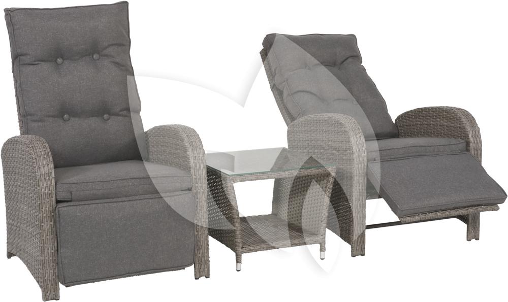 De uitnodigende kussens van dit Melia duo loungeset zorgen al dat u in de stoelen zou willen ploffen om er vervolgens niet meer vanaf te komen! De stoelen zijn compleet verstelbaar; zowel de rugleuning als voetensteun kunt u naar eigen wens instellen, genieten ten top dus! De stoelen zijn van vergrijsd wicker zijn makkelijk te onderhouden en het tafeltje is afgewerkt met een gehard glasplaatje op rubber dopjes. Dit duo loungeset staat prachtig op een patio of balkon, een eigen plaatsje om even goed tot rust te komen!