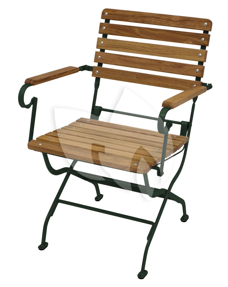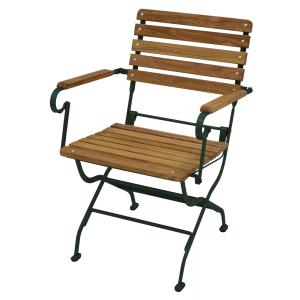 Opklapbare fauteuil, donkergroen platstaal + robiniahout