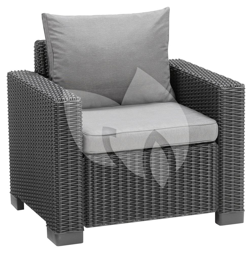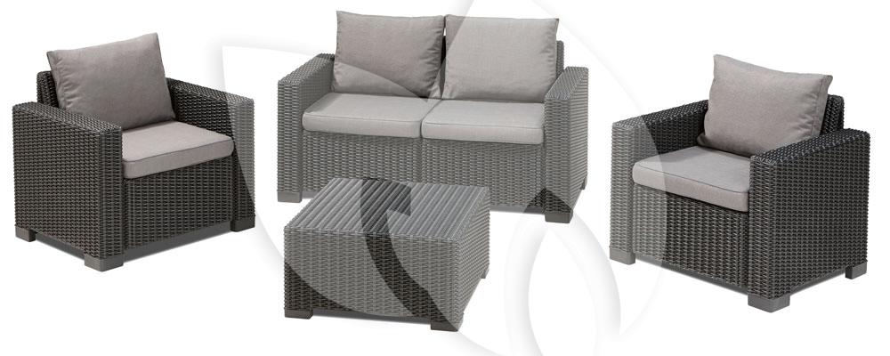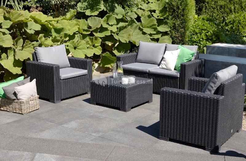 Met de California loungeset 2 zits antraciet bent u helemaal klaar voor de mooie zomerse dagen en zwoele zomeravonden! De loungeset bestaat uit twee loungestoelen, een tweepersoons zitbank en een handige tafel waardoor u met deze loungeset uw terras direct compleet maakt. De loungestoelen en de loungebank zijn voorzien van comfortabele kussens voor een optimaal zitcomfort, in deze comfortabele loungeset zou u het liefst de hele dag blijven zitten!
