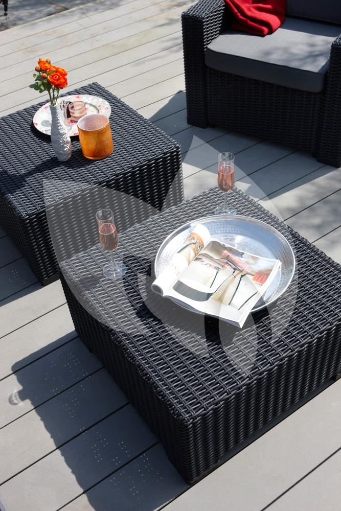 Kom maar op met die zomer, want u kunt voortaan heerlijk gaan genieten van een mooie zomerse dag of een zwoele zomeravond in deze comfortabele loungeset van Allibert! Deze California loungeset is een echte eye-catcher voor in uw tuin. De loungeset is voorzien van het populaire en welbekende wickerlook en heeft hierdoor een exclusieve uitstraling verkregen. Nodig uw vrienden of familie uit en ga samen heerlijk loungen onder het genot van een lekker hapje en drankje. Een waardevolle toevoeging voor in iedere tuin waaraan u vaak en langdurig plezier zult beleven!