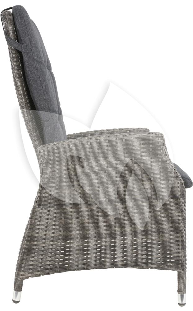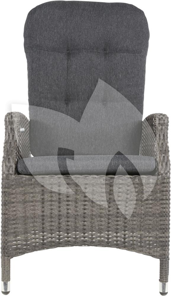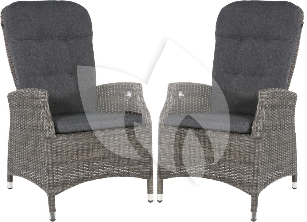 Comfort op hoog niveau! Deze tuinstoelen zijn ontzettend comfortabel. De bijpassende kussens zorgen voor een zachte zit en de verstelbare rugleuning zorgt dat u ultiem kunt genieten van de mogelijkheden van deze tuinstoel. De tuinstoelen hebben een aluminium frame dat omwikkeld is met een grijs wicker. Het tijdloze ontwerp maakt dat de tuinstoel op eindeloos veel manieren te combineren is met tuintafels; u kunt een set compleet naar eigen zin samenstellen.