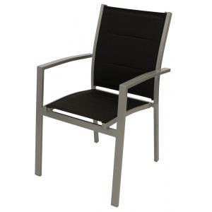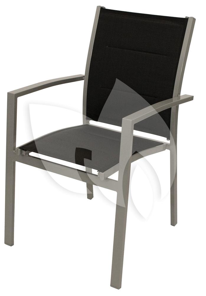 Stapelbare fauteuil van aluminium en zwarte kunststof stof