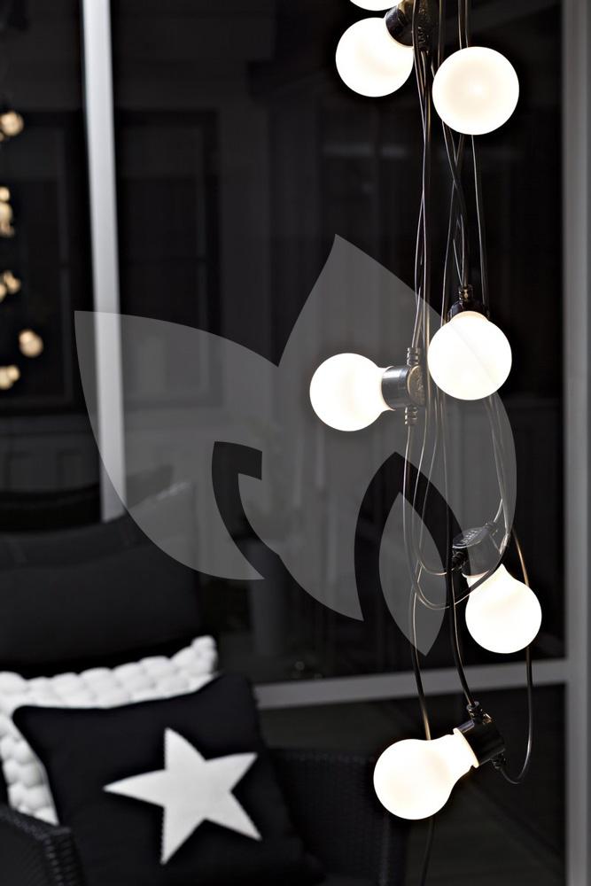 De feestverlichting is voorzien van LED-lampjes met een opaal, peerachtige vorm. De lampen zorgen voor een sfeervol, gezellig warmwit licht. Doordat de lampen zijn voorzien van LEDs is de verlichting ook nog eens zeer energiezuinig en hebben ze een lange levensduur. Dankzij de lange lengte van het aansluitsnoer kunt u gemakkelijk een stopcontact bereiken en de verlichting overal gebruiken. Het partysnoer is voorzien van vaste lampen, deze zijn niet vervangbaar.