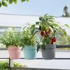 Moderne balkonbak welke eenvoudig op meerdere manieren gemonteerd kan worden. Conny blijft makkelijk horizontaal of verticaal hangen aan de meegeleverde band, of bevestig met een schroef aan een muur. Tip: Plant je favoriete kruiden in deze leuke potjes.