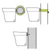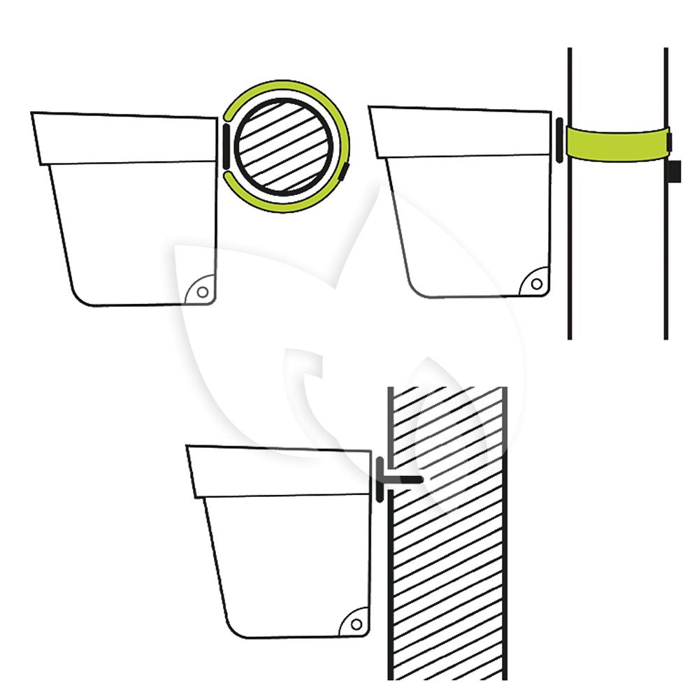 Met de meegeleverde band eenvoudig via het kliksysteem te bevestigen aan de balkonreling. Draai de aansluiting van de band op de bak horizontaal.