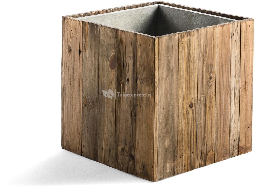 De plantenbak is vervaardigd uit gerecycled hout en hierdoor is ieder exemplaar uniek.