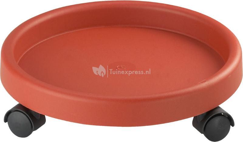 De plantentrolley is gemaakt van kunststof en heeft een diameter van 34 centimeter.