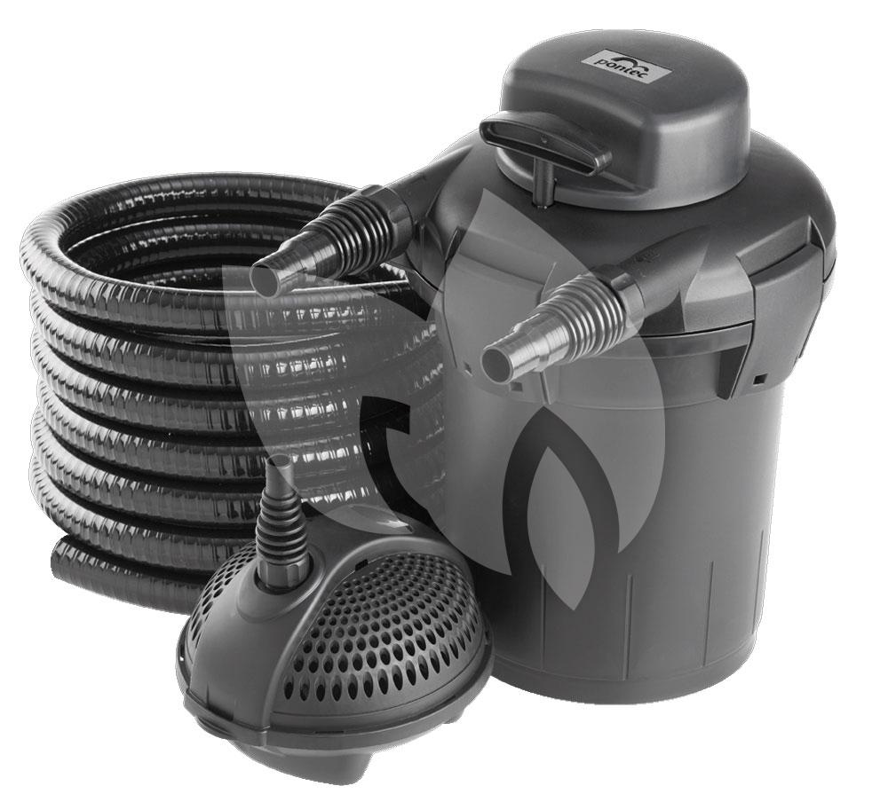 Drukfilter set 10000 bestaat uit een drukfilter PondoPress met geïntegreerd UVC en de daarop afgestemde filter- en beeklooppomp Pondomax Eco.