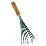 Metale verzinkte gazonhark welke geschikt is voor het verzamelen van gemaaid gras, bladeren en tuinafval. Deze hark heeft een dwarsverbinding die moet voorkomen dat de tanden in elkaar komen of breken.