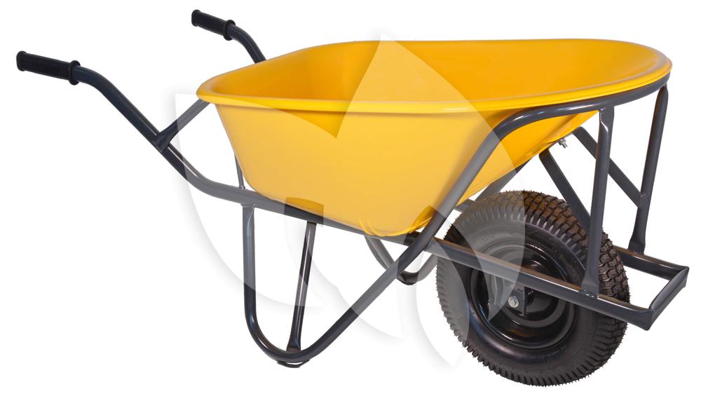 Deze zeer stevige kruiwagen wordt niet voor niets een stratenmakers kruiwagen genoemd. Met zijn HDPE kunststofbak en zijn inhoud van 90 liter, maakt deze kruiwagen zeer geschikt voor het zware werk. Het frame is van stevig metaal gemaakt, de ronde buizen zijn grijs gecoat. Voor de grip bevat de kruiwagen foam handvatten.