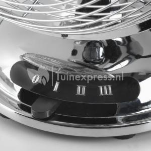 De VTM12 ventilator tafelmodel is gemaakt van metaal in een robuust en strak design. Daarnaast is de ventilator voorzien van vier ventilatorbladen en een vermogenknop in de voet. Met deze vermogenknop kunt u de ventilator instellen op verschillende snelheden, de snelheden varieren van laag (1), middel (2) en hoog (3). De ventilator is zwenkbaar en kan binnen een hoek van 45º in de rondte draaien, tevens kan hij naar beneden of boven blazen. Door deze handige eigenschappen heeft u op iedere gewenste plek een verfrissend windje. De ventilator wordt geleverd inclusief alle bijbehorende materialen en bevestigingsmaterialen waardoor u de ventilator gemakkelijk en snel in elkaar kunt zetten.
