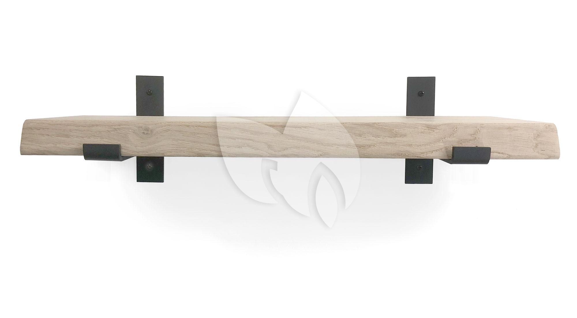 Eiken wandplank boomkant 120 cm in 20 cm diepe industriele plankdragers