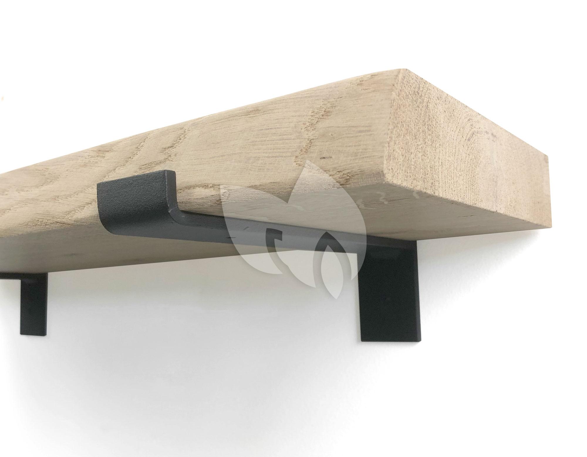 Eiken wandplank boomkant 60 cm in 20 cm diepe industriele plankdragers