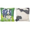 Maak uw tuinbankje helemaal af met een tuinkussen met koeienprint. De voorzijde van het kussen heeft een afbeelding van een koe en de achterzijde heeft een afbeelding van koeienvacht. Met dit tuinkussen kunt u dus constant van uitstraling wisselen. De PP vulling in het tuinbank kussen maakt het kussen extra comfortabel. Het tuinbank kussen is weerbestendig en is dus ideaal voor op uw tuinbankje.