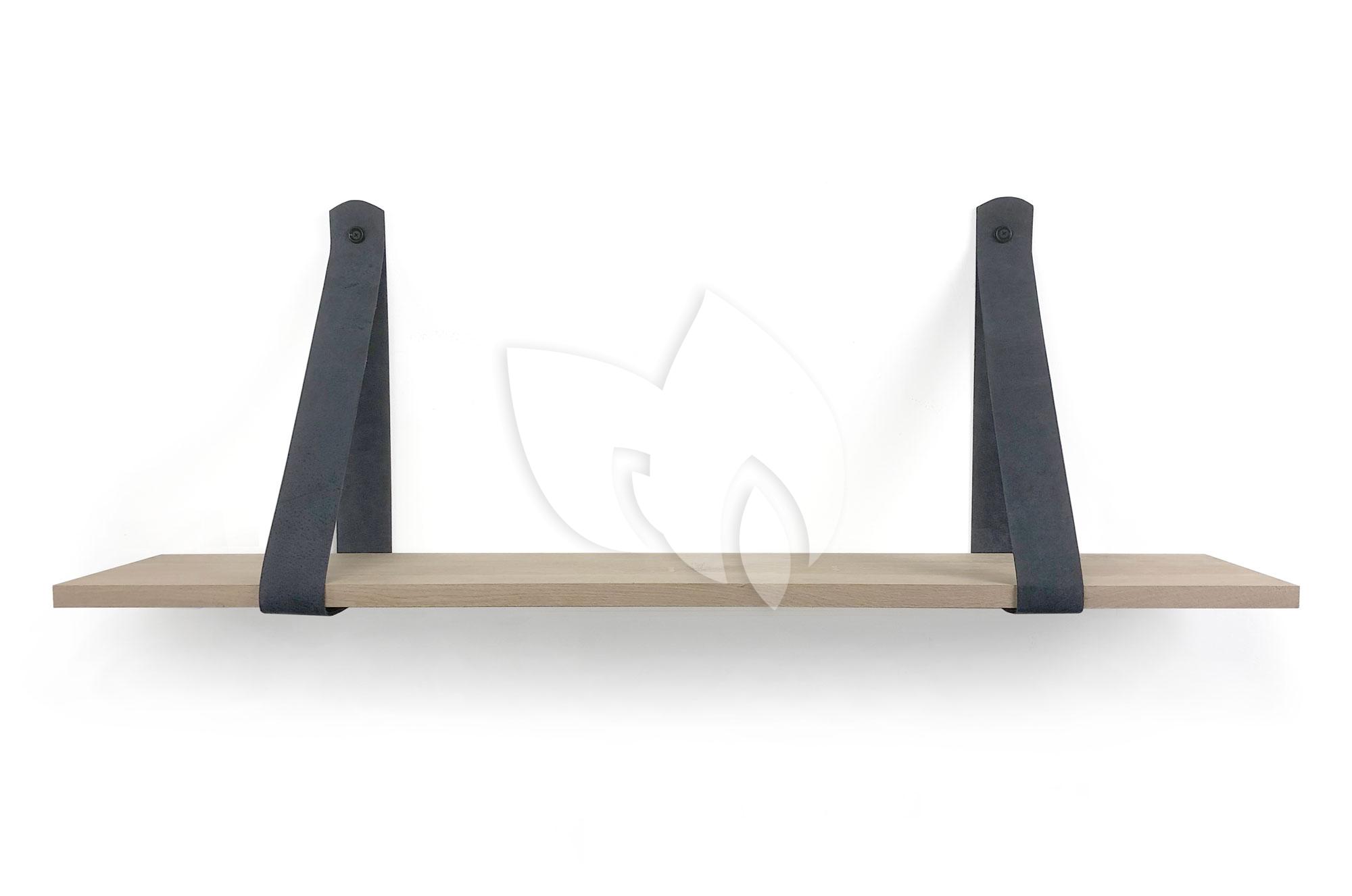 Eiken 18mm wandplank recht 50 x 30 cm inclusief leren riemen grijs