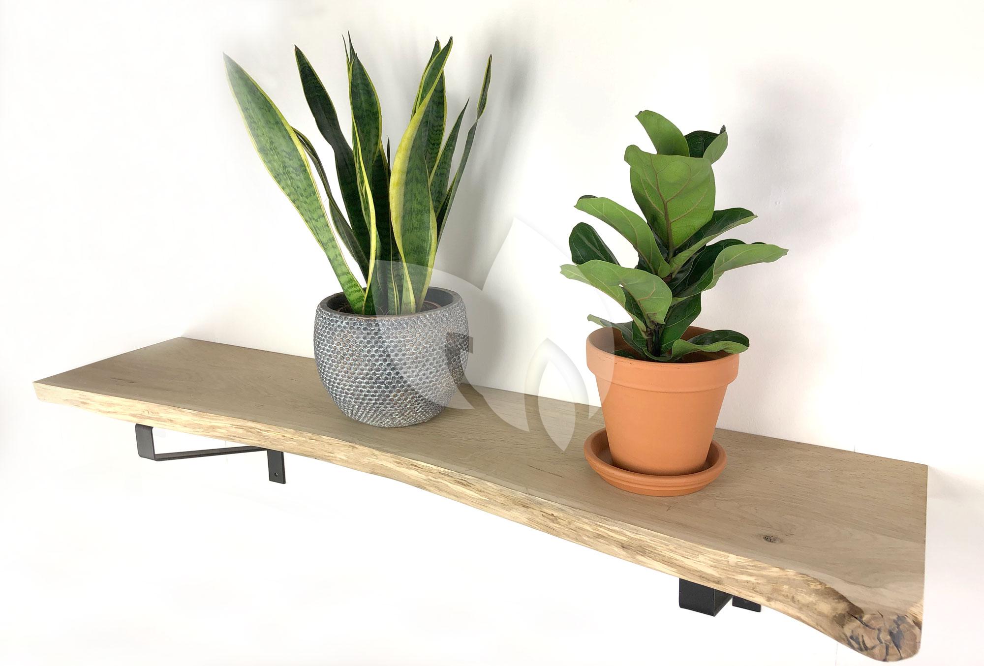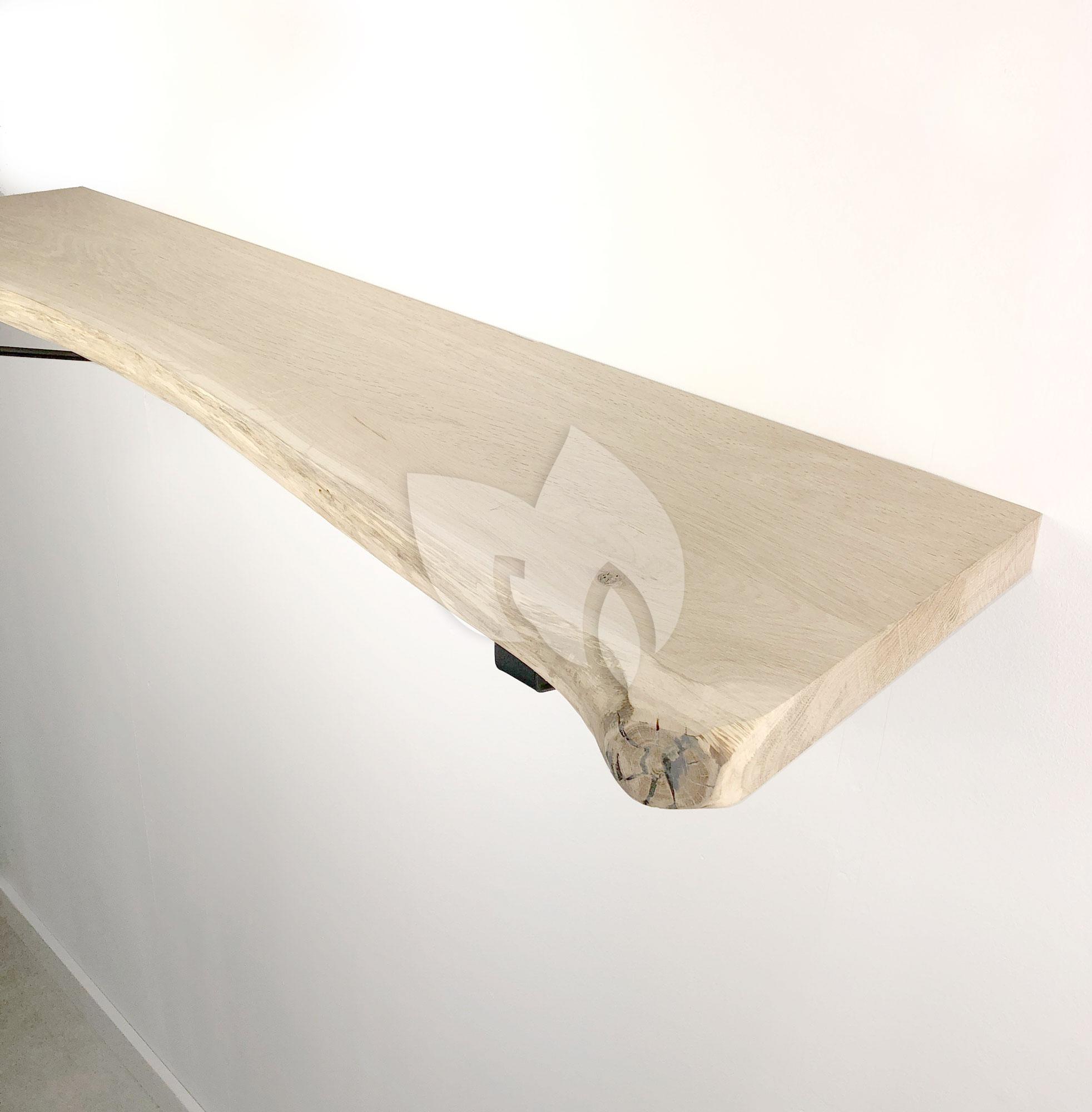 Eiken wandplank massief boomstam 100 x 30 cm inclusief plankdragers