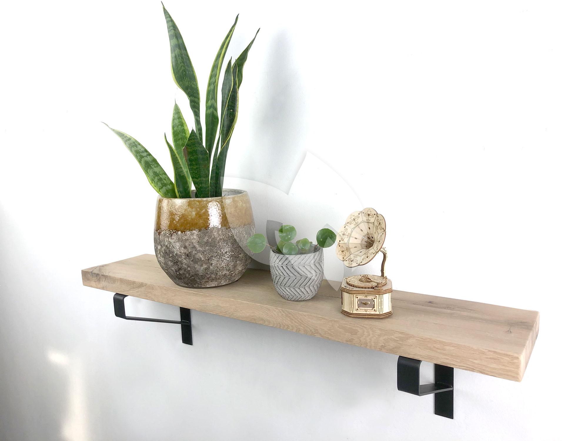 Eiken wandplank massief recht 50 cm op 30 cm diepe plankdragers