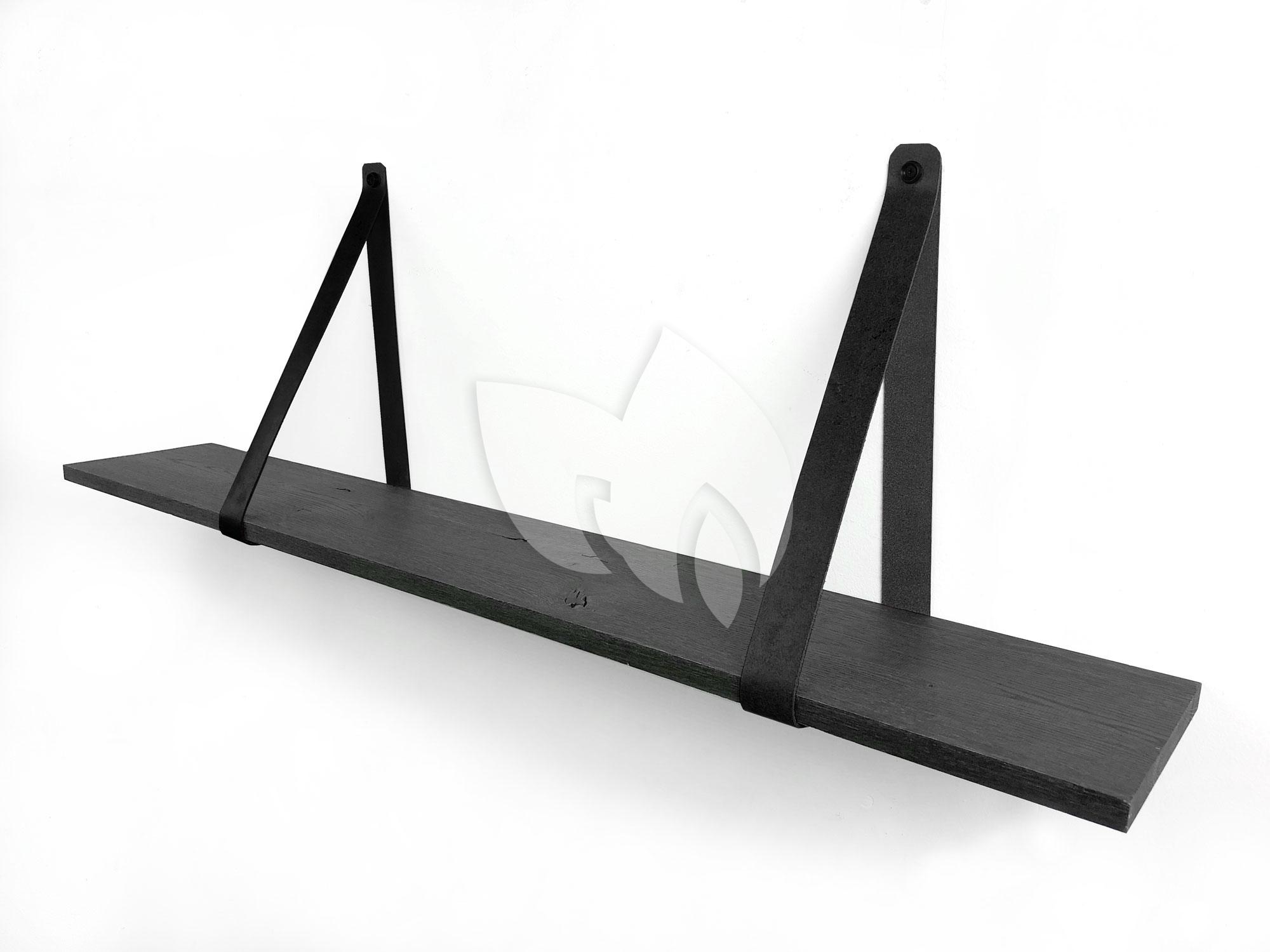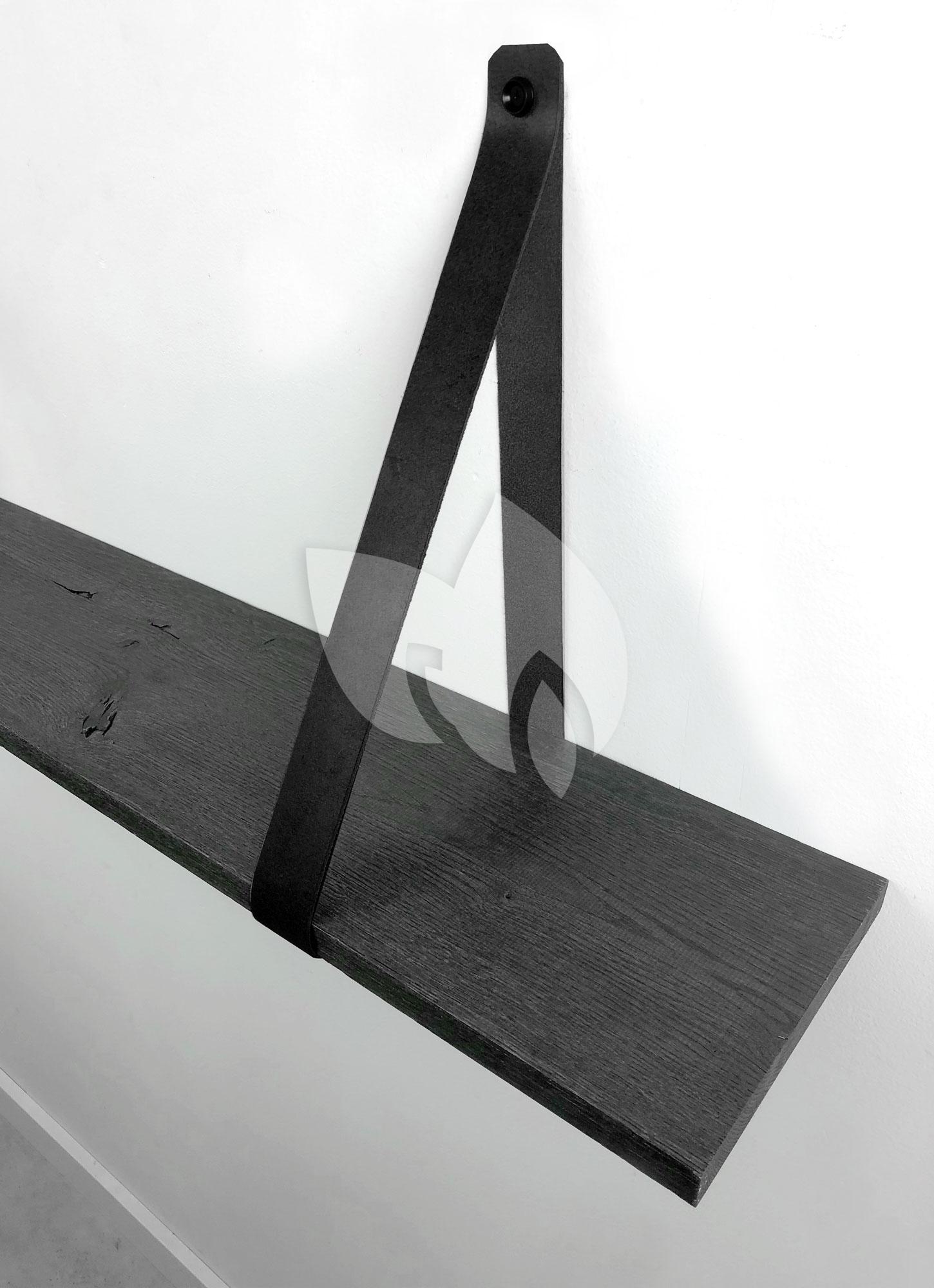 Eiken 18mm wandplank recht zwart 90 x 20 cm inclusief leren riemen zwart