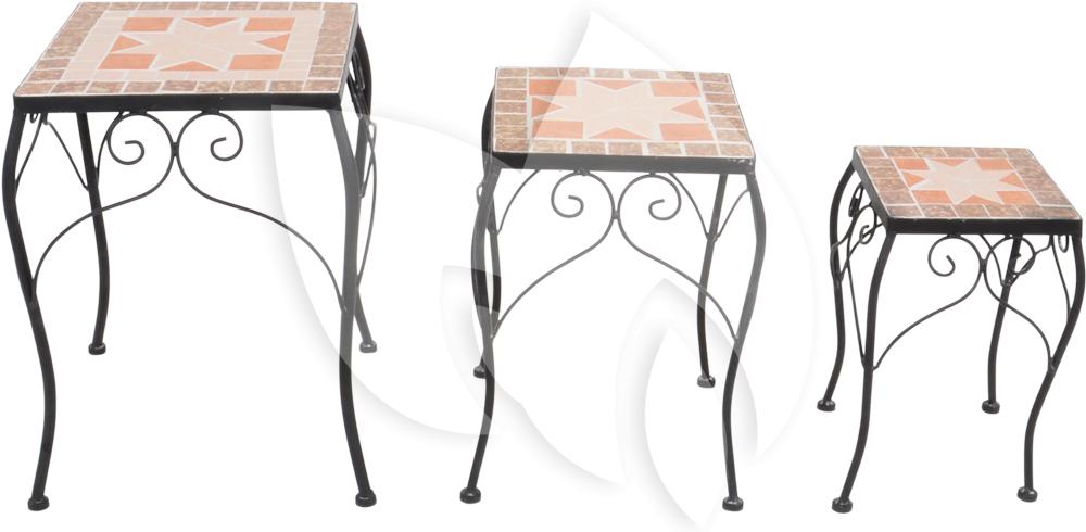 Afmetingen bijzettafeltjes (lxbxh): 18x18x30cm / 23x23x35.5cm / 28x28x40cm