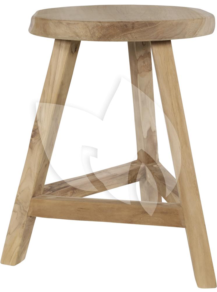 Dit driepoot krukje heeft een stevig frame. De zitting van het krukje heeft de natuurlijke vormen van een boomstam en is 35mm dik. De mix van strakke poten en de natuurlijke vorm van het zitje geeft een speels effect aan het krukje. Oneffenheden in het hout kunnen voorkomen omdat teak een natuurproduct is. Dit kan gaan werken onder verschillende omstandigheden en deze werking van het hout is niet te voorkomen. De houtkleur zorgt dat het krukje in vrijwel ieder interieur te combineren is, of u nu een meer klassieke inrichting heeft of een modern, met de juiste aankleding past dit krukje altijd! Uiteraard kunt u het krukje ook prima als bijzettafeltje gebruiken bij een stoel of bank; handig om uw hapje en drankje bij de hand te hebben!