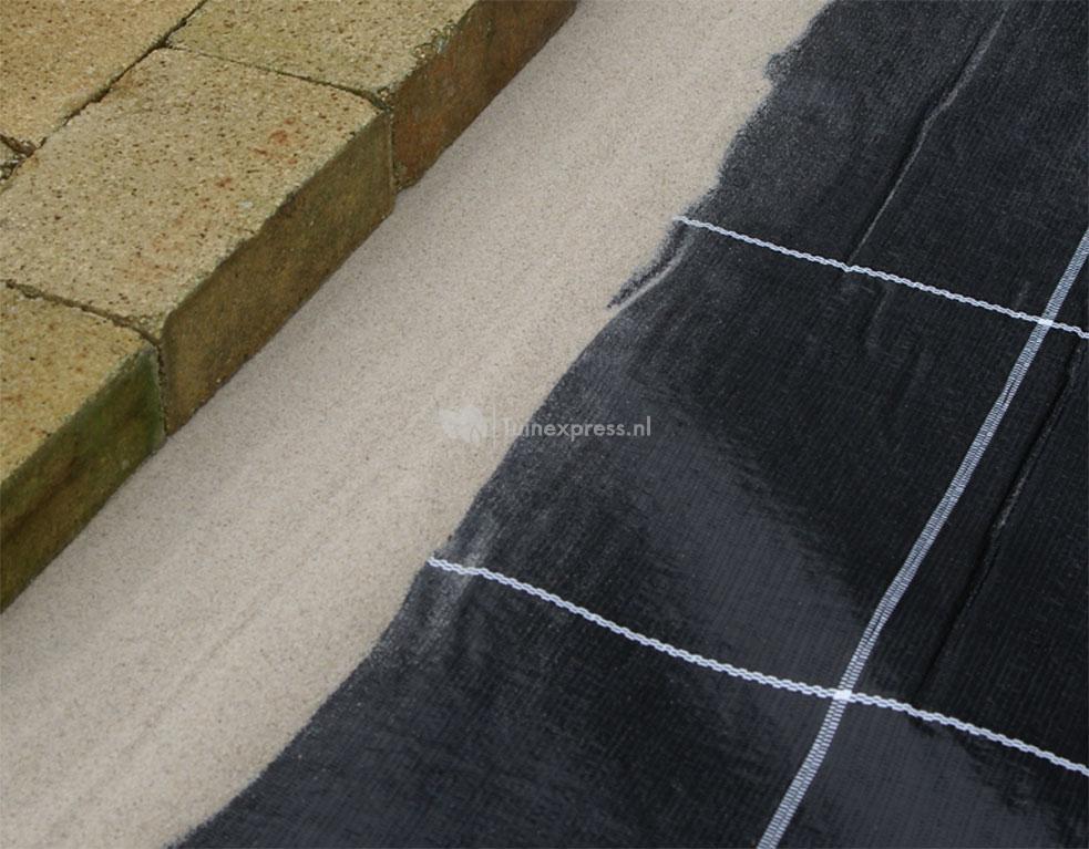 - Onder vlonders, tegen de groei van onkruid door de sleuven van vlonderplanken