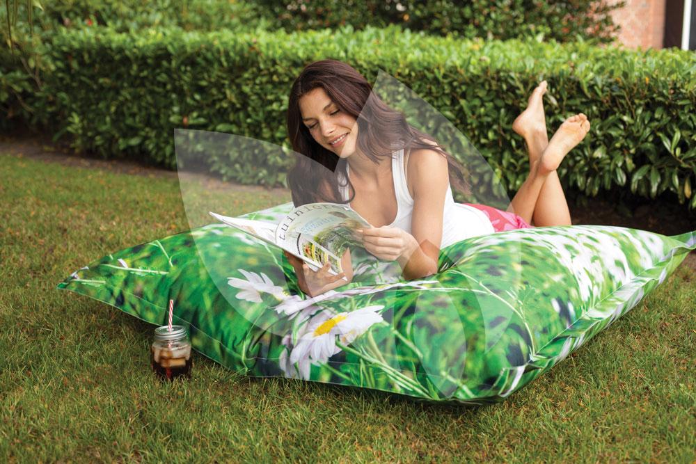 Met deze zitzak voor buiten creëert u een comfortabele zitplaats in uw tuin. Geniet heerlijk van het zonnetje of van een mooie zomeravond in uw eigen zitzak. De zitzak heeft een gezellige bloemenprint waardoor hij iedere ruimte sfeervol maakt. De zitzak is ontwikkeld voor buitengebruik en is daardoor weerbestendig.